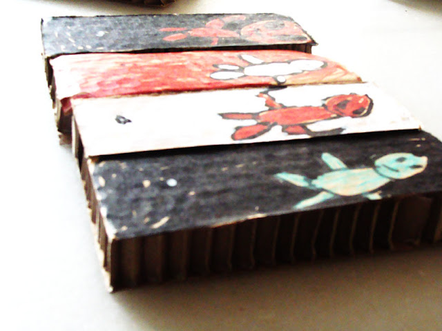Como esta fin de semana montamos un moble de IKEA (piquei outra vez, é a última) temos cartóns para dar e tomar... Estes das fotos son unha especie de carton armado, moi resistente e moi chulo para grafismos varios...Aquí abaixo mostro a obra do meu fillo Miguel (5 anos) que debuxou catro heroes, a saber: o hulk, o capitan america, o lobezno e o normal.